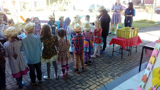 E a festança estava boa "dimais da conta sô"! Teve pescaria, boca do palhaço e até casamento caipira! Olha quanta "boniteza" nesta Escola.