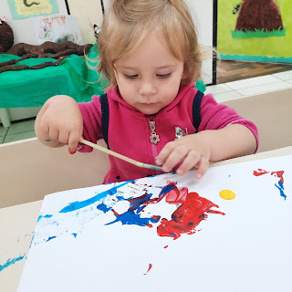 Vamos continuar mostrando um pouquinho de nossas experiências e explorações sobre as cores.E essa semana trabalhamos a mistura das cores primárias de diferentes formas.